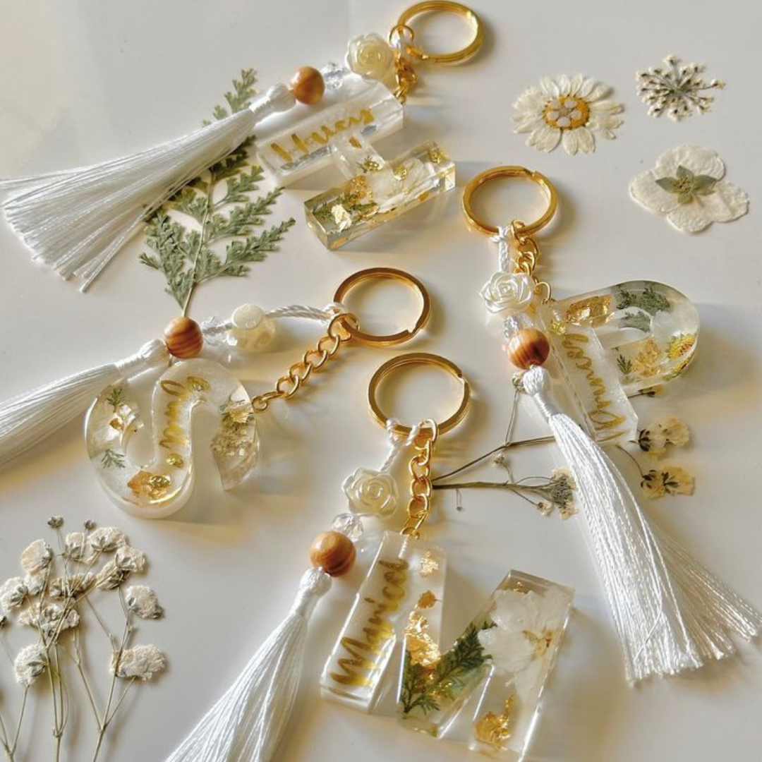 Golden Flora Charm Custom Handmade Resin Letter Keychains – Personalized for Every Occasion